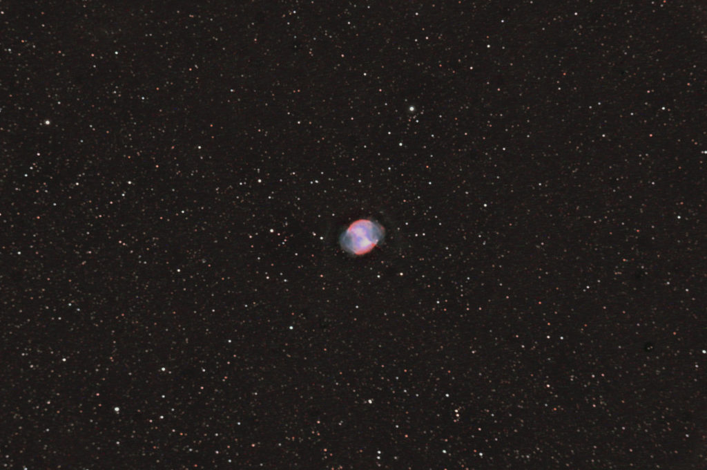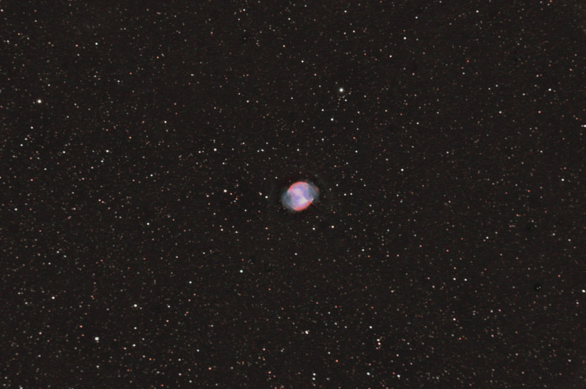 M27, eigentlich schon zu tief, diesig, feucht und zu lange belichtet. Gestern dachte ich dass ich die Fotos löschen muss, heute nach einem kurzen Versuch kam doch noch etwa raus. Man wird ja bescheiden bei dem Wetter 🙂