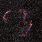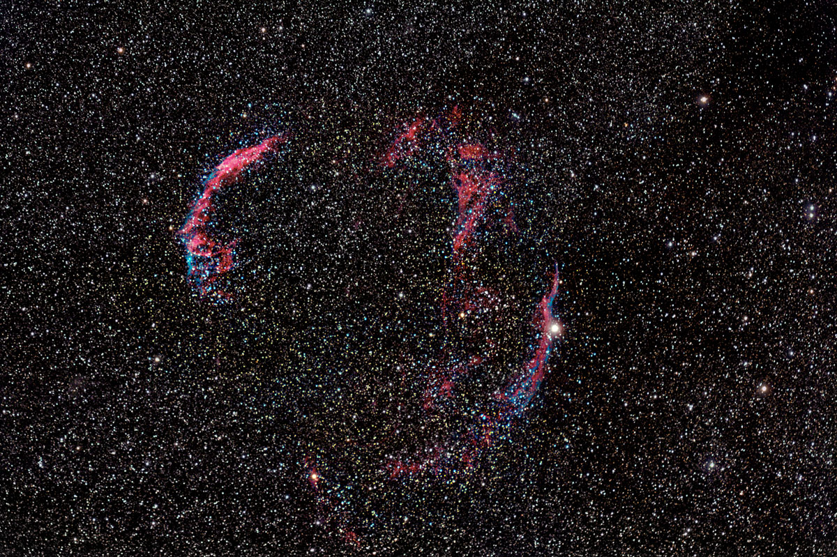 Der Schleier-Nebel, wie er auch genannt wird, ist der im optischen Spektrum sichtbare Teil des Cygnusbogens, einer Ansammlung von Emissions- und Reflexionsnebeln.