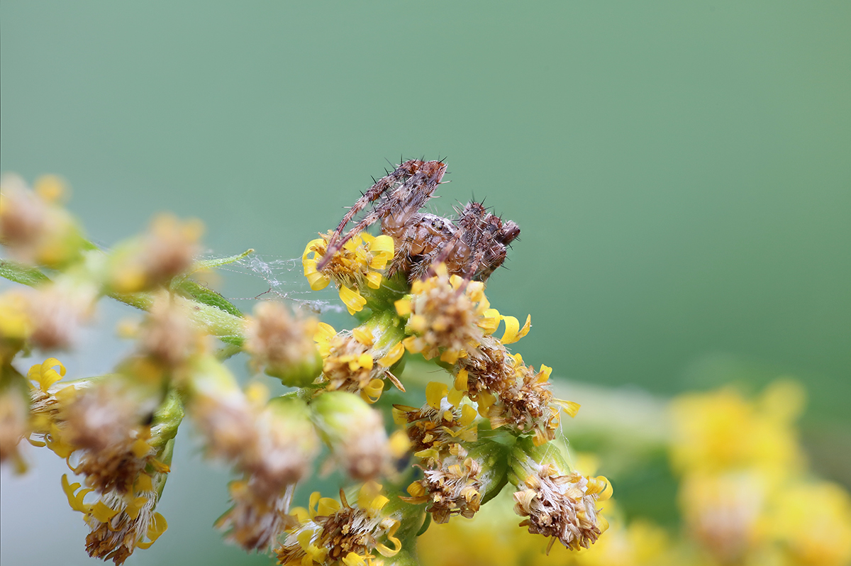 Anderthalb Stunden habe ich warten müssen, bis die kleine Spinne mal ruhig sitzen blieb und ein paar Aufnahmen ermöglichte.