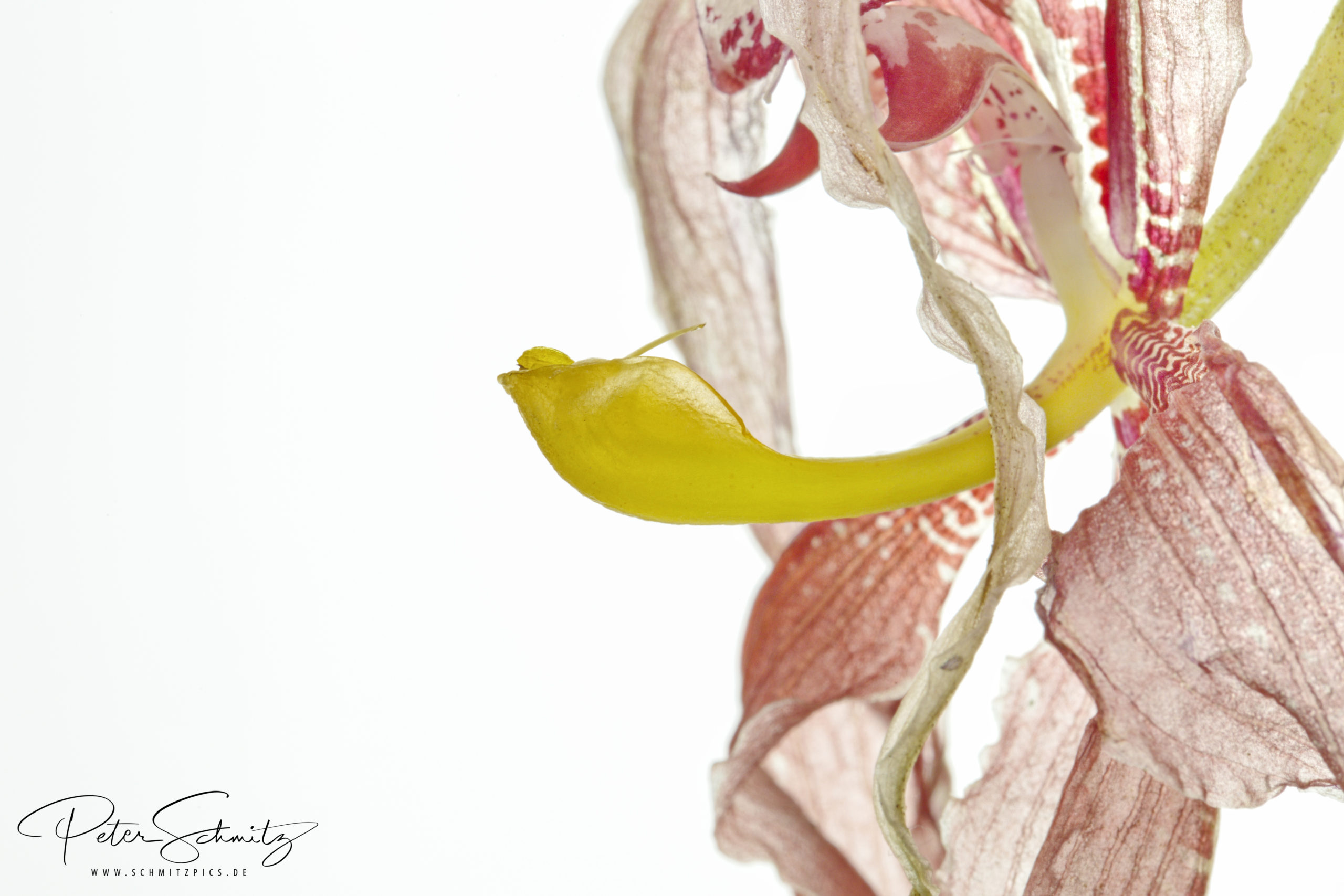 Filigrane Schönheit. Man traut sich kaum den Pfanztopf zu bewegen oder die Orchidee, wie üblich, mit Tesafilm in eine annehmbare Position zu bringen.