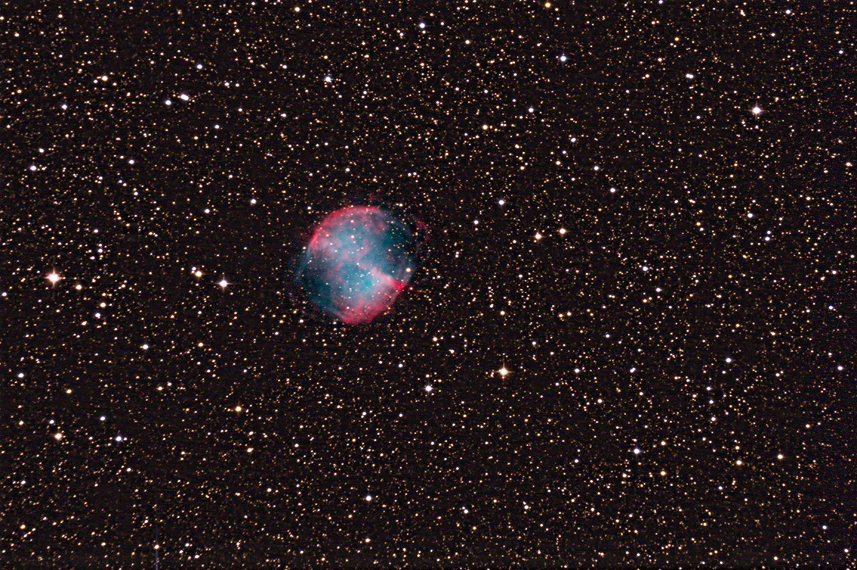 Der Hantelnebel, auch M27, Messier 27, NGC 6853 oder Dumbbell-Nebel genannt, ist ein 7,5 mag heller planetarischer Nebel im Sternbild Füchschen.