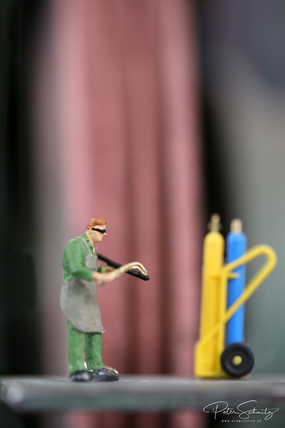 1/87, Figuren Modellbahn, HO Figuren, HO Fotografie, HO Noch, kleine Leute, Macro, Makro, Miniaturfiguren, Minis, Modellfiguren, Noch Figuren, Peter Schmitz, Preiser Figuren, Schlosserei