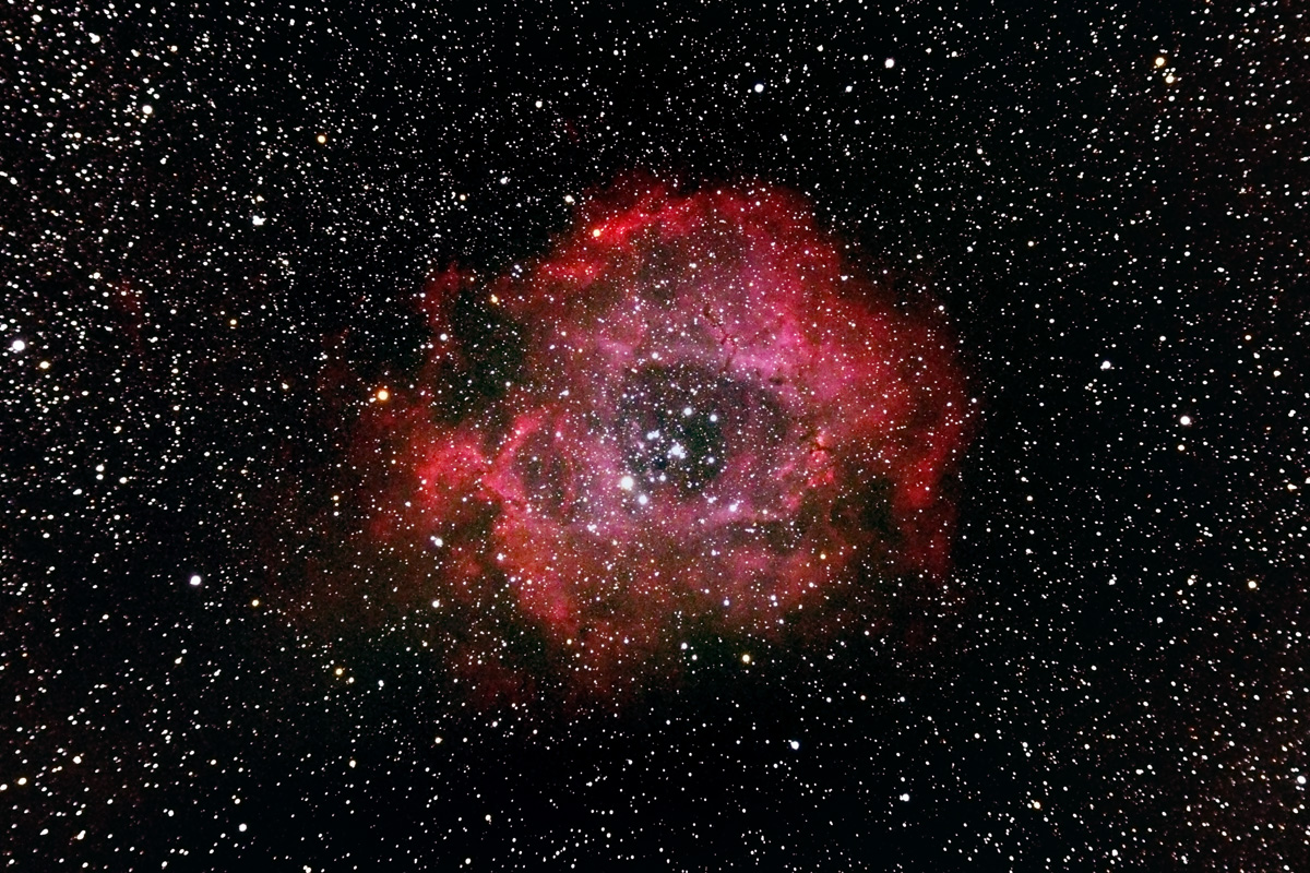 Der Rosettennebel ist ca. 5.000 Lichtjahre entfernt und hat einen Durchmesser von ca. 50 Lichtjahren.